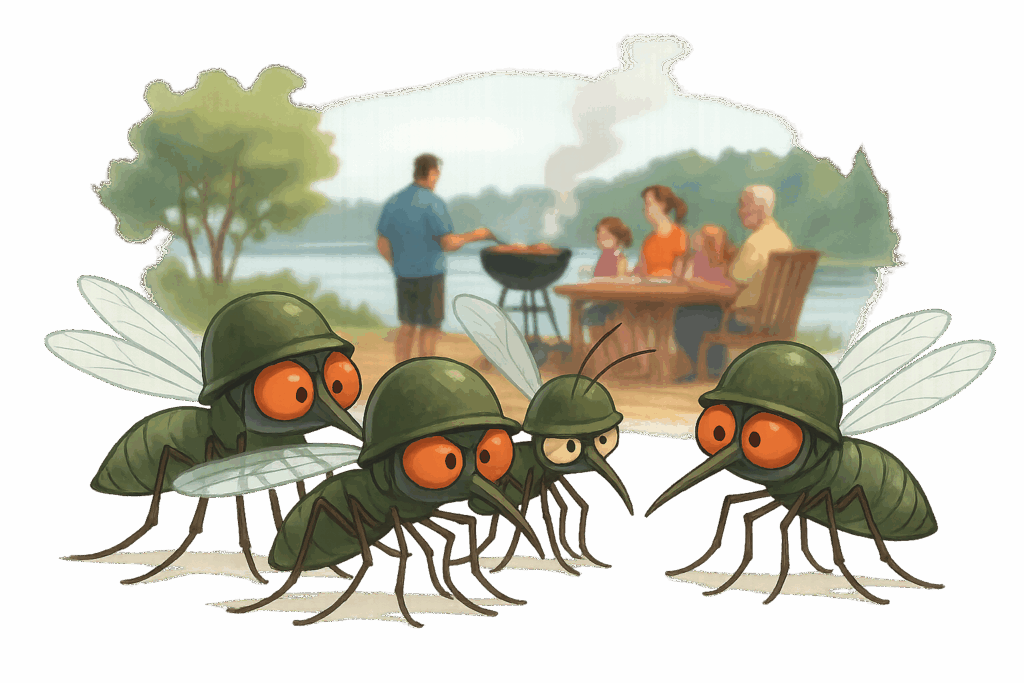 First comes that faint buzz, barely audible over your third glass of cottage wine. You think, “Ah, it’s fine,” but soon you’re the main course at an all-you-can-eat bug buffet.